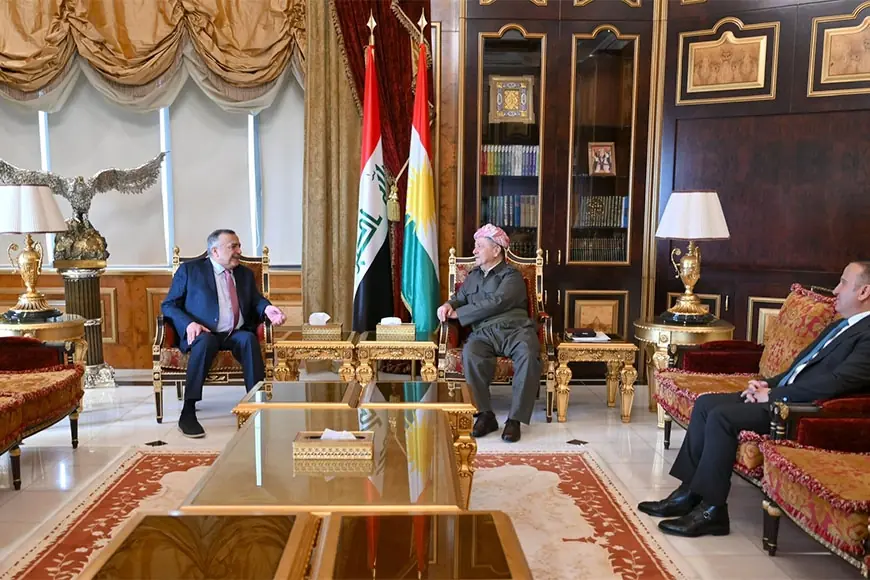 Başkan Mesud Barzani, 10 Aralık 2025 Çarşamba günü, Pirmam’da Çözüm Partisi lideri Cemal el-Karbuli’yi kabul etti.