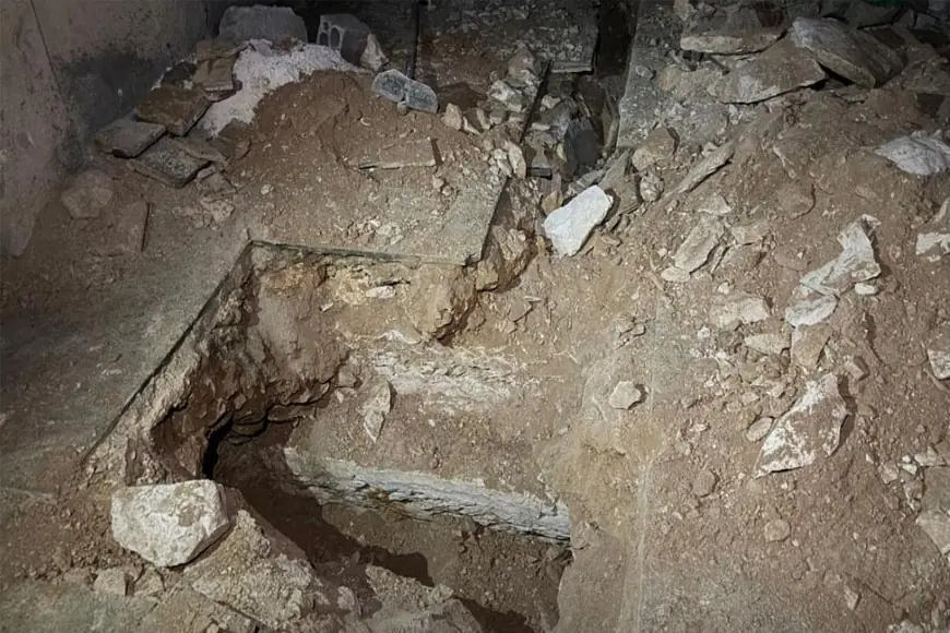 Haberle birlikte yayımlanan bazı fotoğraf karelerinde, metruk bir bina ile içerisinde mezarların bulunduğu belirtilen çukurların yer aldığı görüldü.