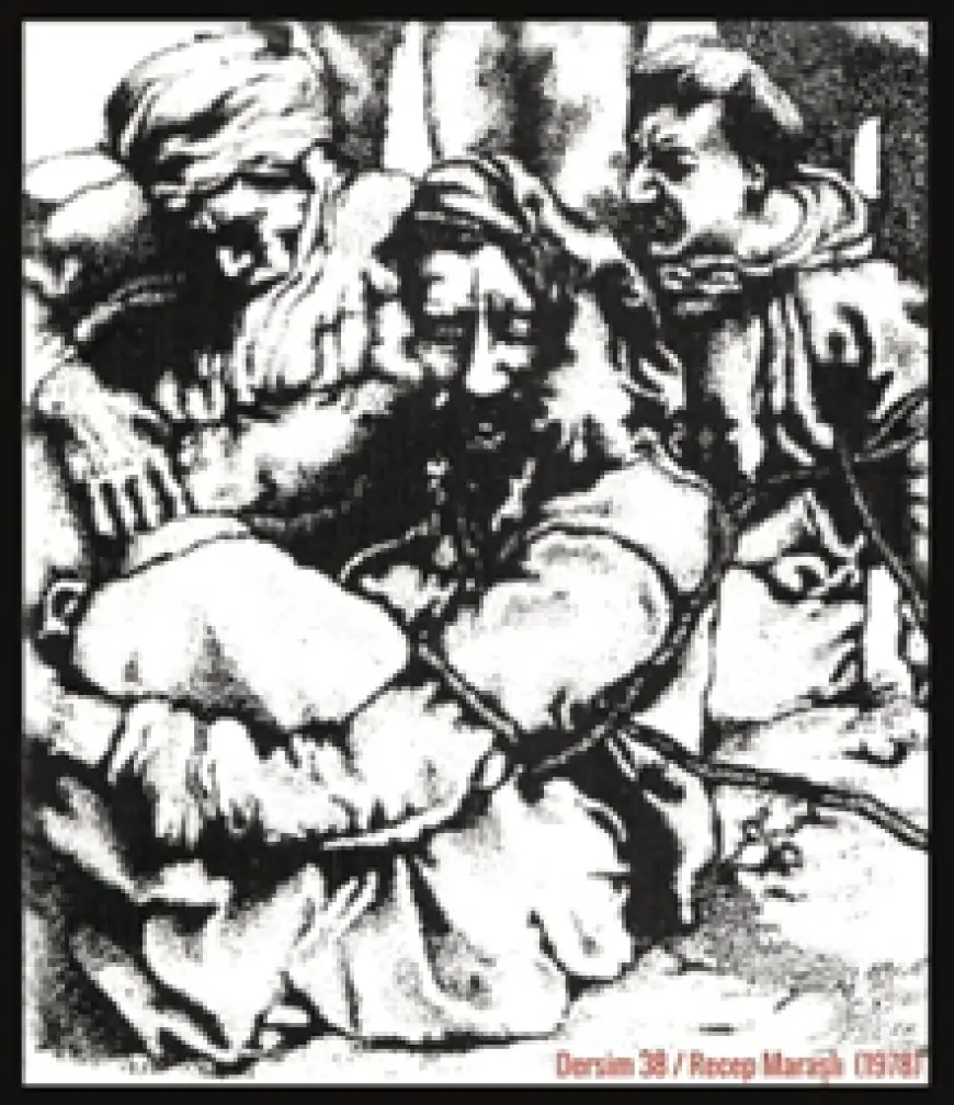 Ben de kitabi ilk okuyanlardan biriyim. Çünkü yayına hazırlamak Komal ekibinin işiydi. Hatta üzerinde kırmızı mürekkeple basılı “Dersim Halkına Mahsustur” diye ibare bulunan, eski defter tipindeki TC kimliğinin bir fotokopisi vardı. Dersimliler için “özel kimlik” çıkarılması önemli bir belgeydi. Keza devrimci hareketteki 68’ kuşağından gençlerin bir kısmının, Dersim’de görev yapan aile büyüklerinin albümlerinden buldukları birçok fotoğrafı Komal’a getirmişlerdi. Bunların çoğu Rızgari dergisinin kapaklarında, Komal yayınlarında kullanıldı. Bunlardan birini büyütüp stilize etmiştim ve 1978 yılında Komal Takviminde yayınladık.