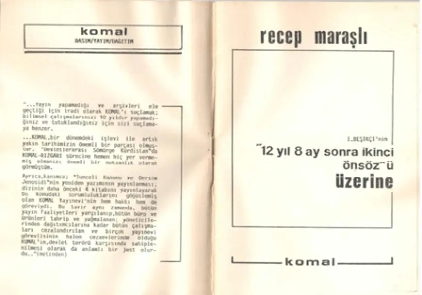 4) Recep Maraşlı, İ.Beşikçi’nin ‘12 Yıl 8 ay sonra 2. Önsöz’ü Üzerine, Komal, Basel-Suiss, Aralık 1990