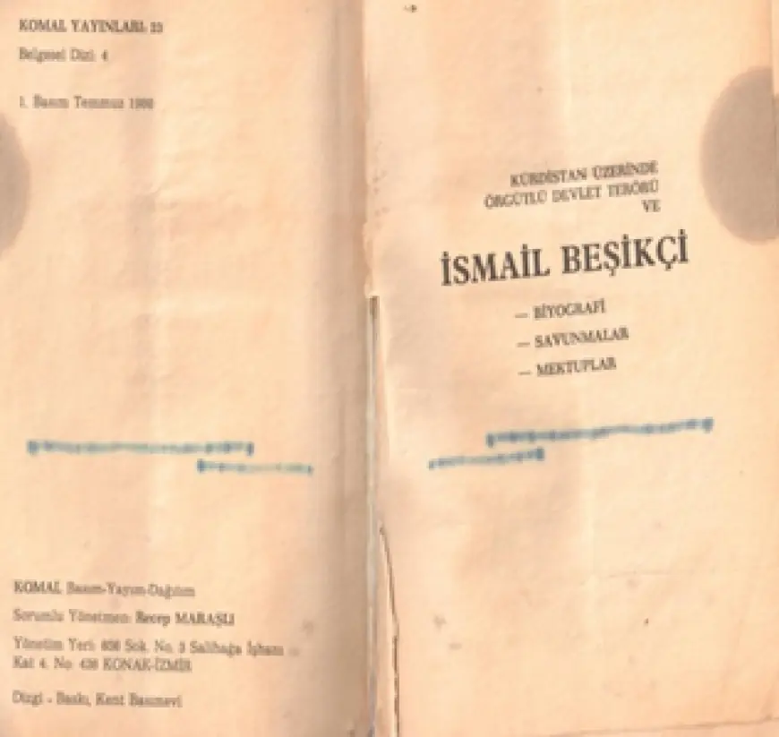 2) Komal yayınevi Temmuz 1980’de yayınlanan “Kürdistan üzerinde örgütlü devlet terörü ve İSMAİL BEŞİKÇİ, -Biyografi, -Savunmalar, -Mektuplar” isimli kitap.