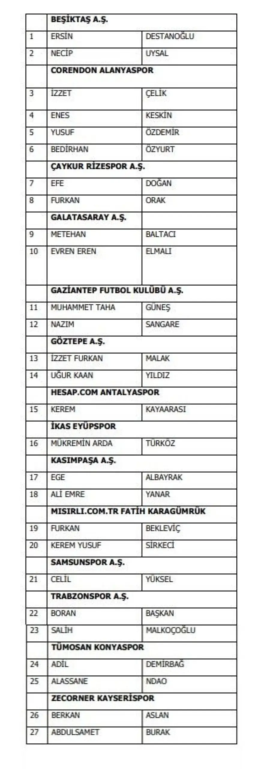 TFF'nin açıkladığı bahis oynayan 1024 futbolcu arasında Süper Lig'de forma giyen isimlerin listesi