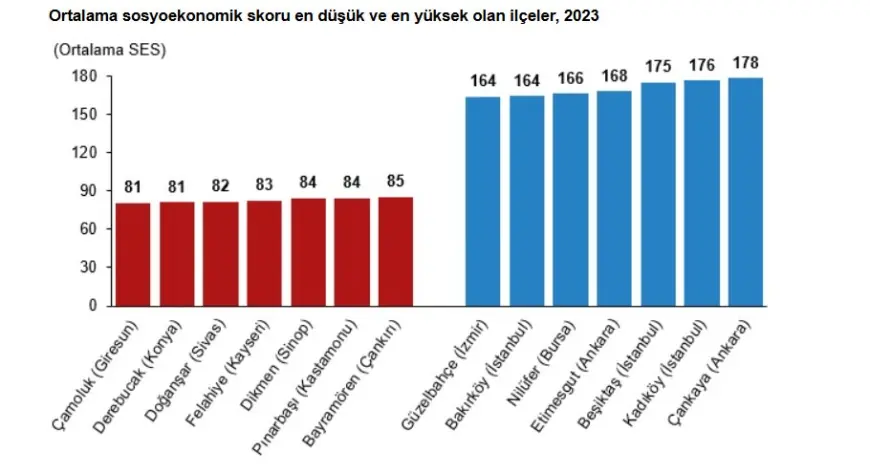 İlçeler bazında bakıldığında, Çankaya (Ankara), Türkiye’nin en yüksek sosyoekonomik skoruna sahip ilçesi oldu.